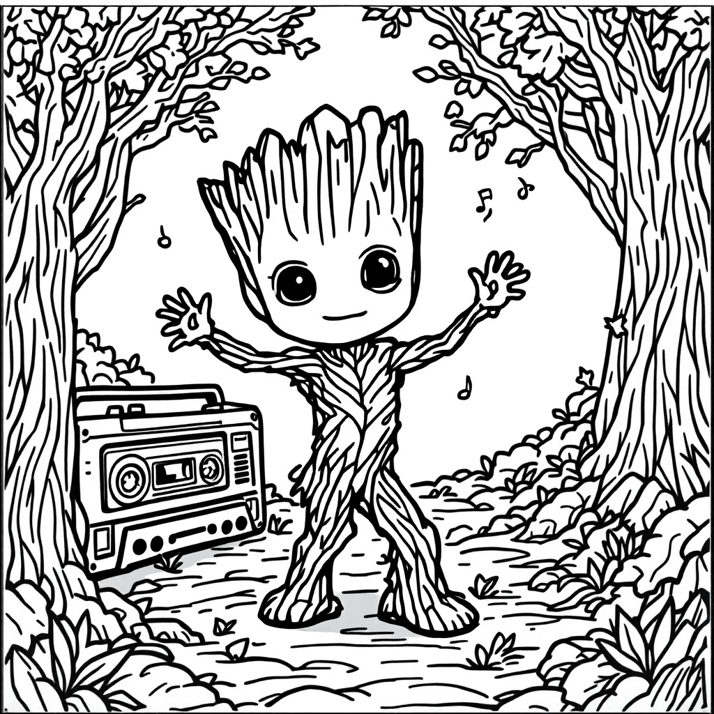 Welcome little artists! Today, we have a special coloring page featuring Groot, a friendly tree-like creature from outer space. Groot loves nature and adventures, and he can grow and shrink at will. Get your coloring supplies ready and let's bring Groot to life with your favorite colors!