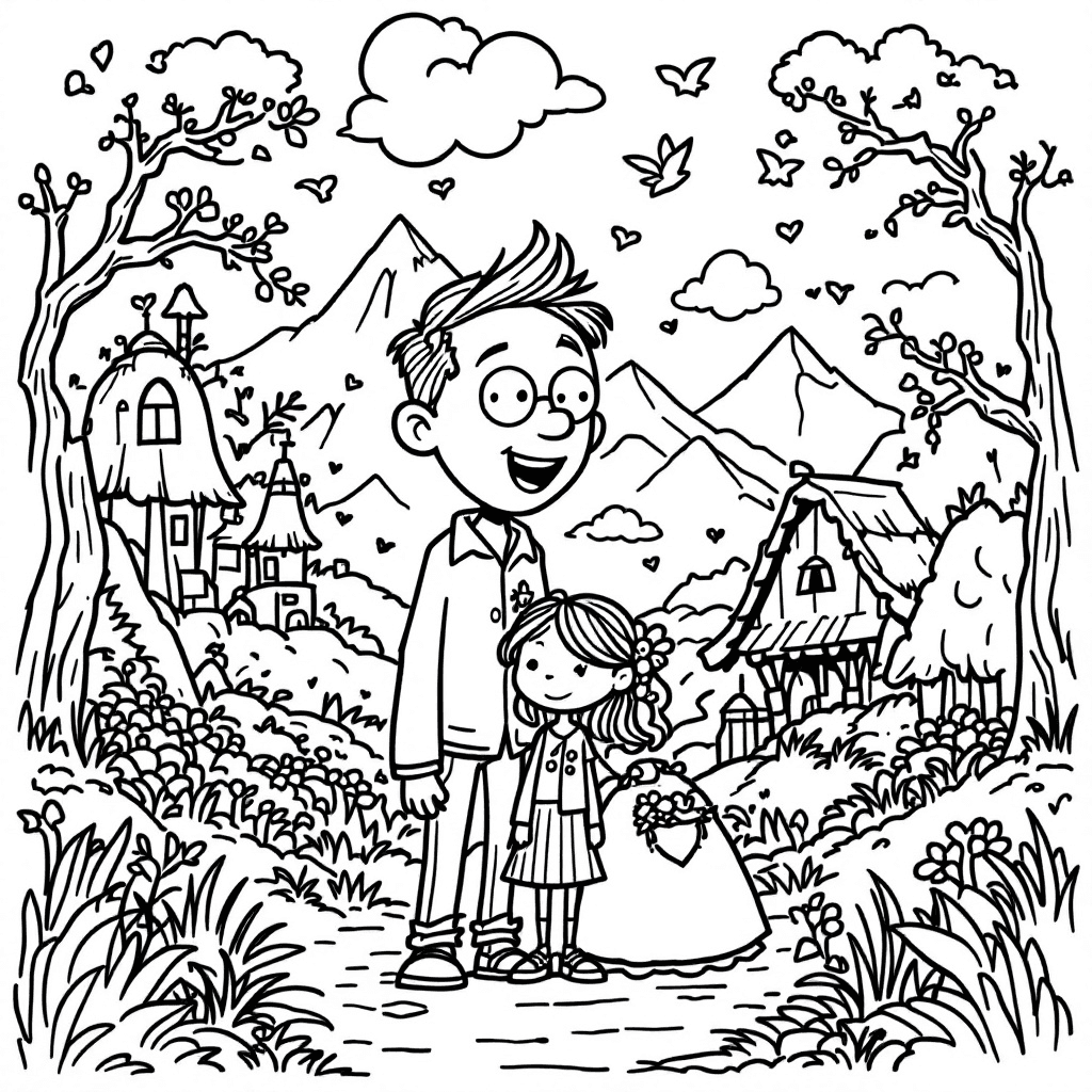 Welcome to the coloring page titled 'Up'! Imagine you are soaring through the sky on a magical adventure. Get ready to add color to the amazing world above us!