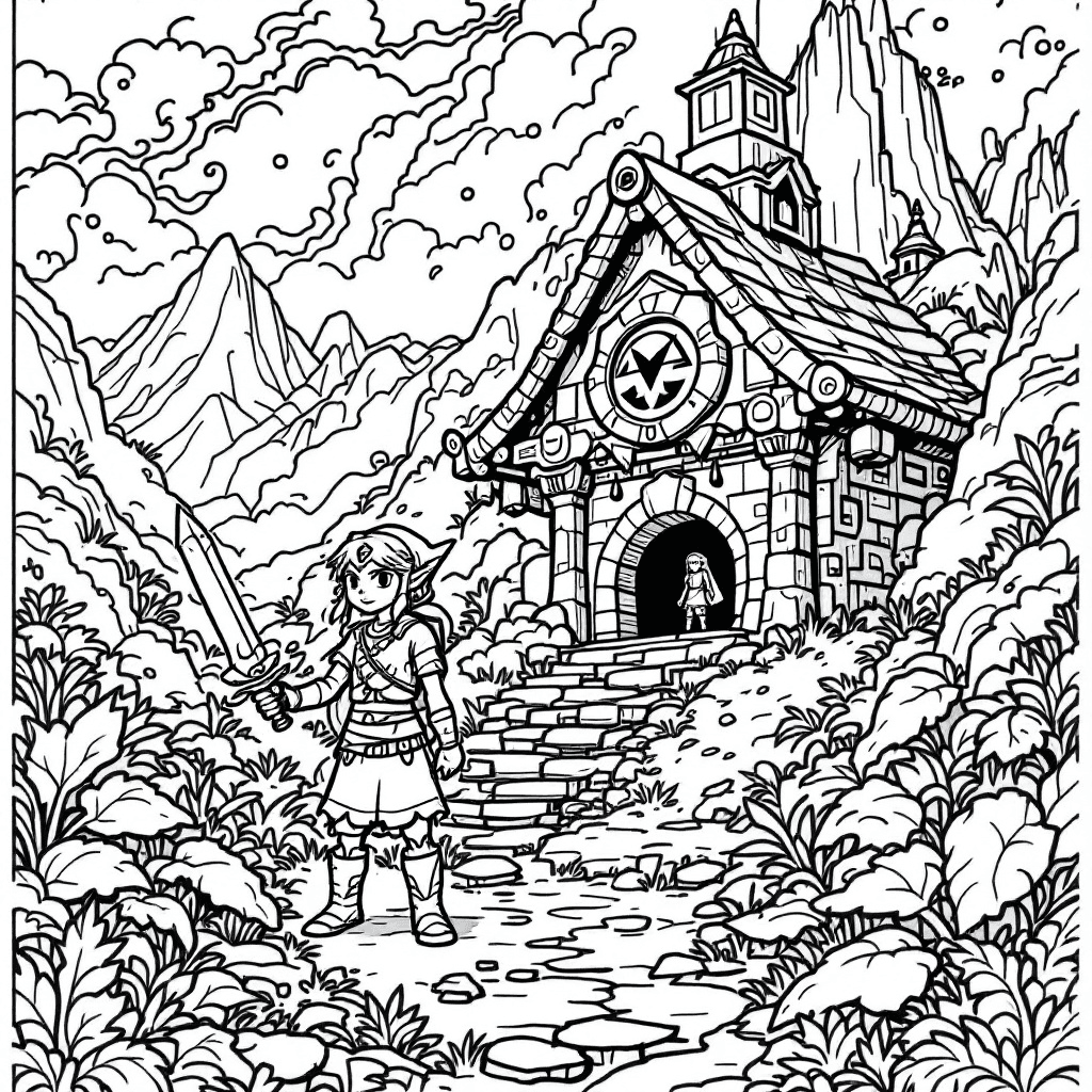 Welcome young artists! Today, we have a special coloring page for you featuring an adventurous princess named Zelda. She is on a magical quest to save her kingdom from evil. Let's help her by adding some color to her world!
